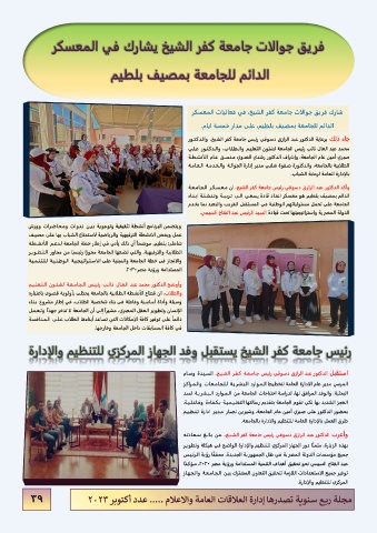 ةىعىماىجىلا رىكىسىعىم نا ،خيشلا رفك ةعماج سيئر يقوسد قزارلا دبع روتكدلا دكأو