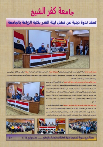 سيئر يقوسد قزارلا دبع روتكدلا ةياعرب ،ةعماجلاب ةعارزلا ةيلكب تميقأ يتلاو " ردقلا ةليل لضف " ناونعب ةودن ،خيشلا رفك ةعماجب بالطلا ةياعرل ةماعلا ةرادإلا تمظن