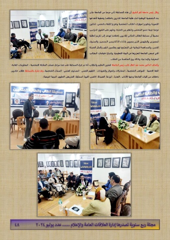 - ةماعلا تامولعملا - ةيصخشلا ةلباقملا تلمش لحارم ةدع لع ةقباسملا ءارجإ مت هنأ ،بالطلاو ميلعتلا نوئشل ةعماجلا سيئر بئان لاعلا دبع دمحم روتكدلا فاضأو