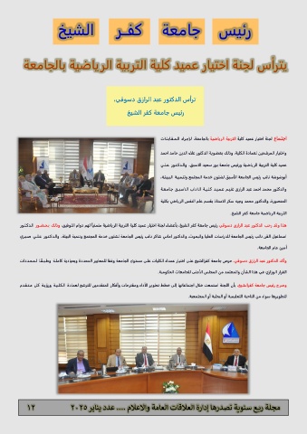 روعتعكدعلا روعضعحعب لذو ،قيفوتلا ماود مهل ًاينمتم ةيضايرلا ةيبرتلا ةيلك ديمع رايتخا ةنجل ءاضعأب ،خيشلا رفك ةعماج سيئر يقوسد قزارلا دبع روتكدلا بحر دقو اذه