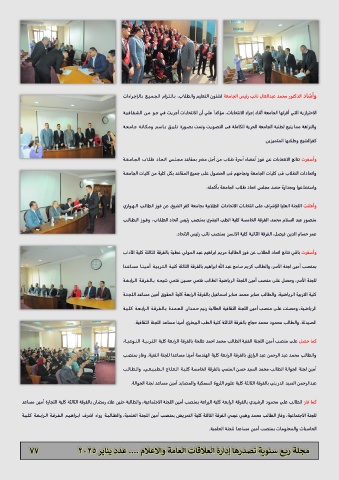 وعاسم نيمأ ةراجتلا ة يلك ةثلاثلا ةقرفلاب اضمر ءالع نينح ةبلاطلار ةيعامتجالا ةنجللا نيمأ بصنمب ةعارزلا ةيلك ةعبارلا ةقرفلاب يويشرلا دومحم يلع بلاطلا زاف امك
